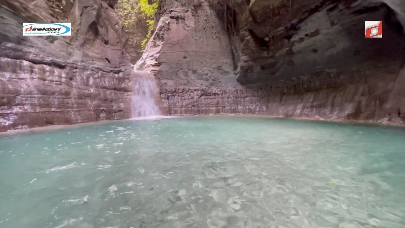 Goresan pada bebatuan cadas ini makin melengkapi keelokannya. Ada kolam yang jernih dengan airnya yang kebiruan. Air terjun ini seperti sebuah mangkok yang cuma berisi beberapa air.